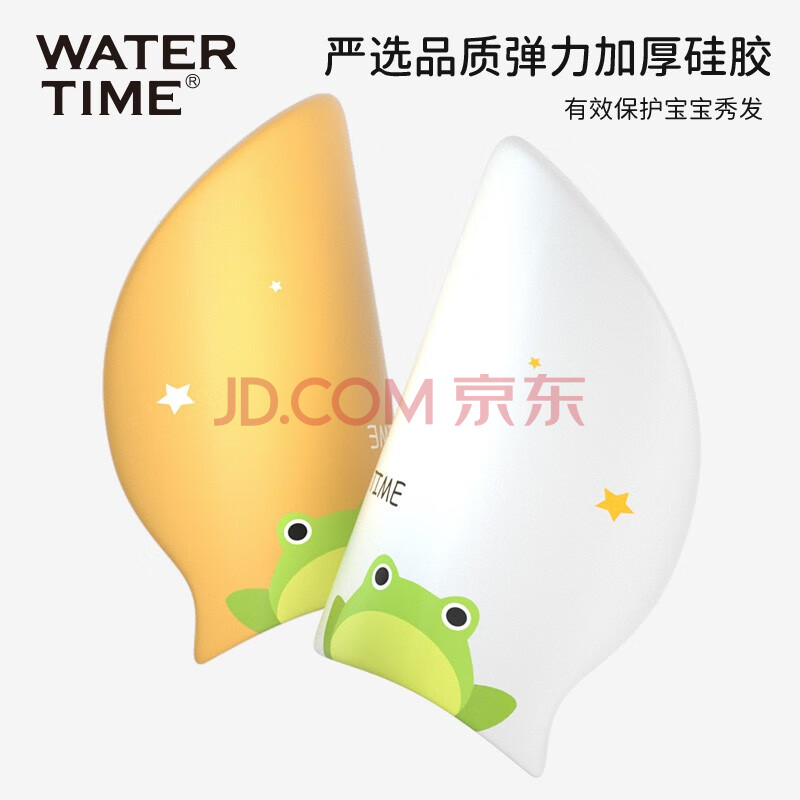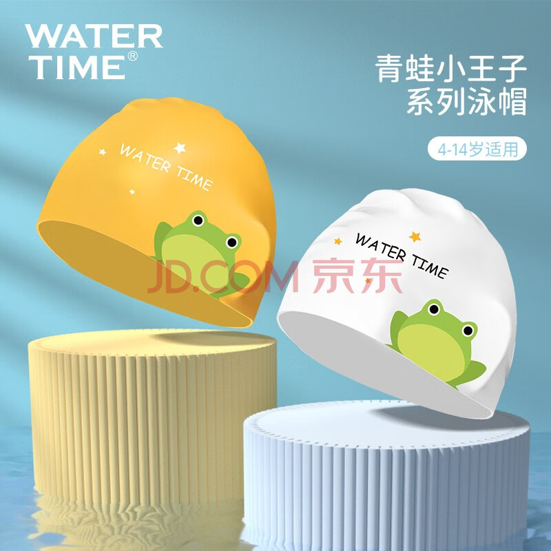 商品相册:WATERTIME/水川 儿童泳帽男童女童防水硅胶不勒头长发护耳游泳帽青蛙王子黄第