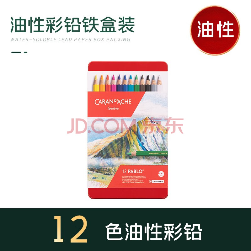 商品相册:凯兰帝(CARANd'ACHE)瑞士卡达油性彩铅12色彩色铅笔彩铅笔美术套装巴勃罗铁盒666312美术写生第