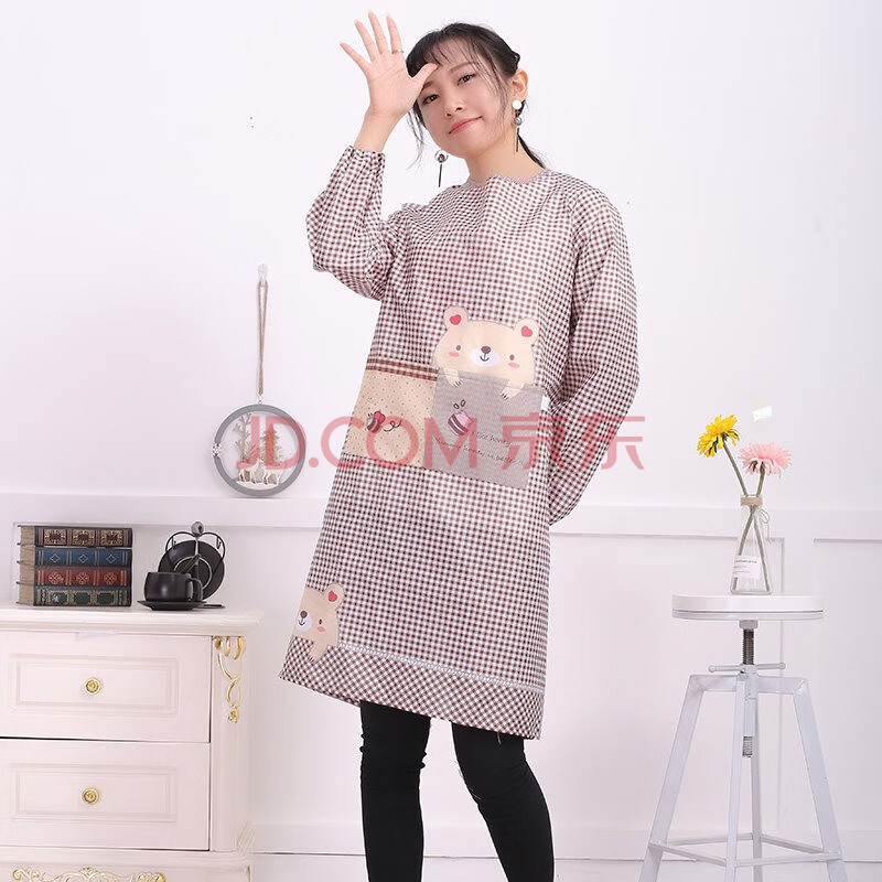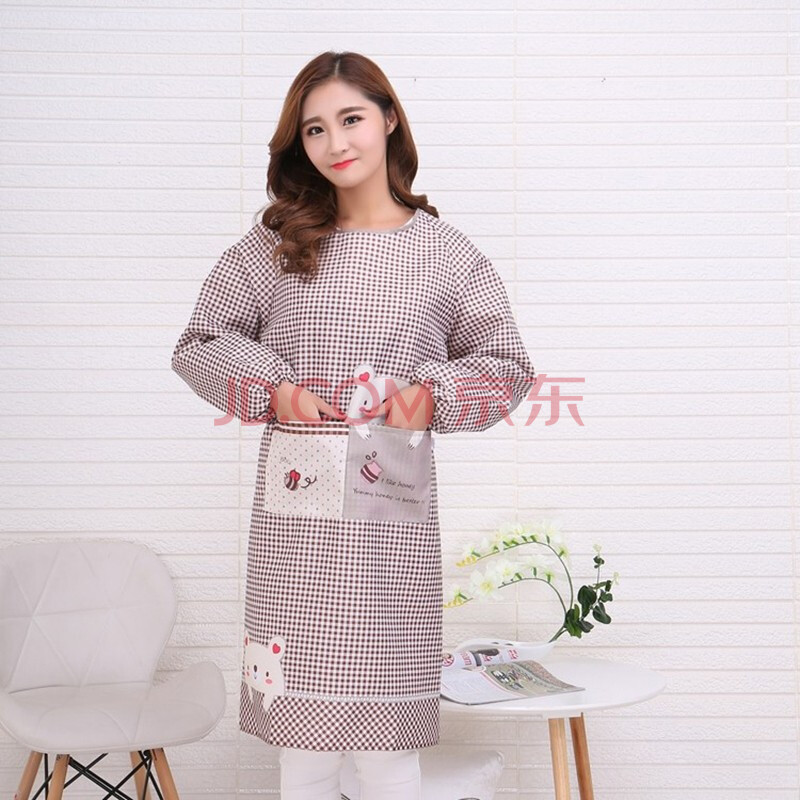 商品相册:觅时光防油污长袖罩衣成人围裙厨房可擦手男女时尚家务围裙长袖第
