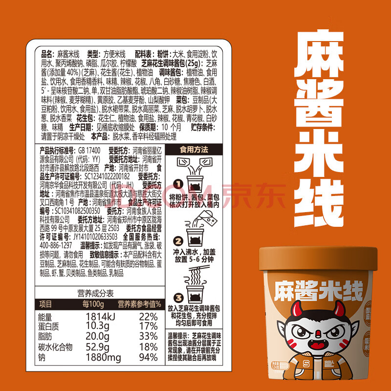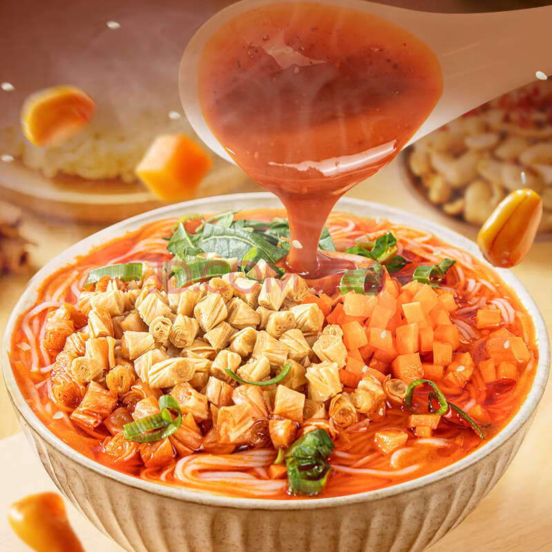 商品相册:食族人麻酱米线124g*6桶 爽脆蔬菜 非油炸米线粉丝 方便速食食品第