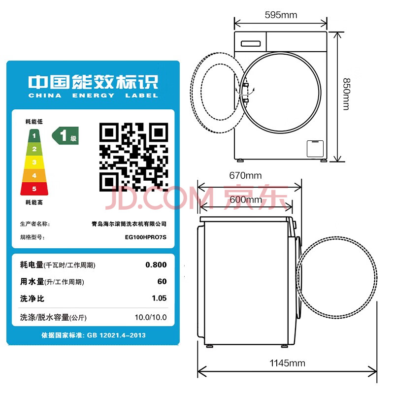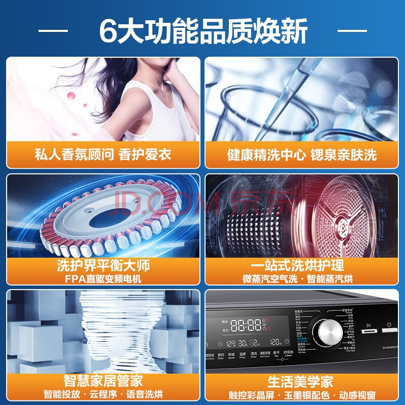 商品相册:海尔(Haier)滚筒洗衣机全自动 高温除菌蒸汽除螨 10KG洗烘一体 变频电机EG100HPRO7S(专)第