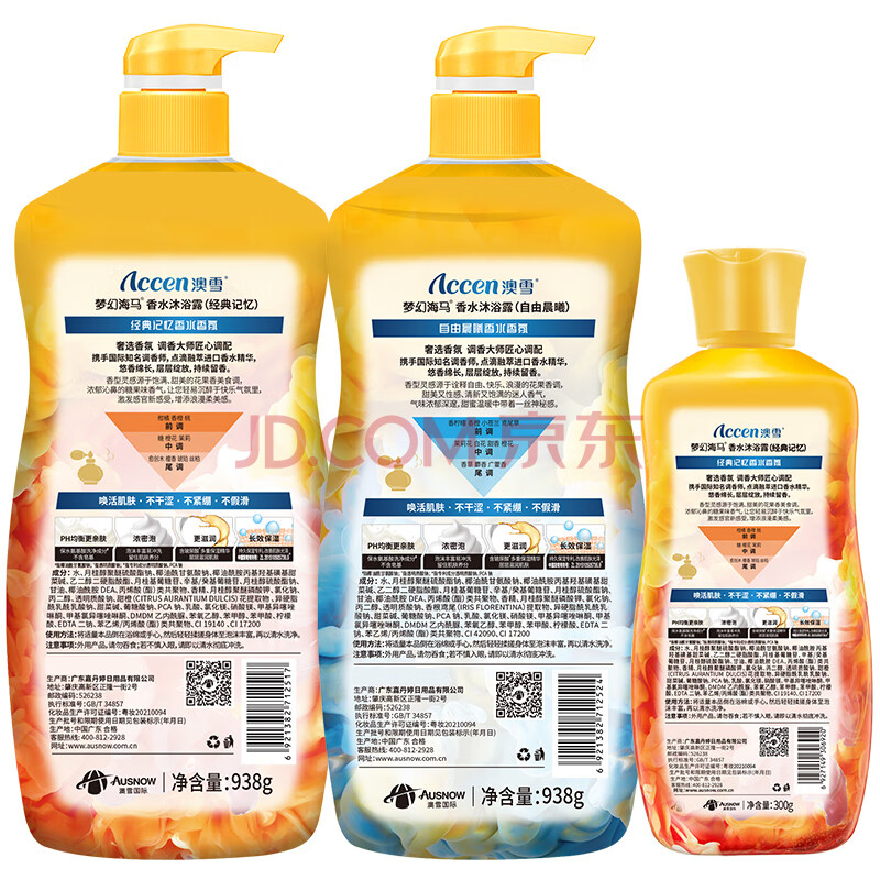 商品相册:澳雪梦幻海马香水沐浴露 938g经典记忆+938g自由晨曦 送300g经典记忆第