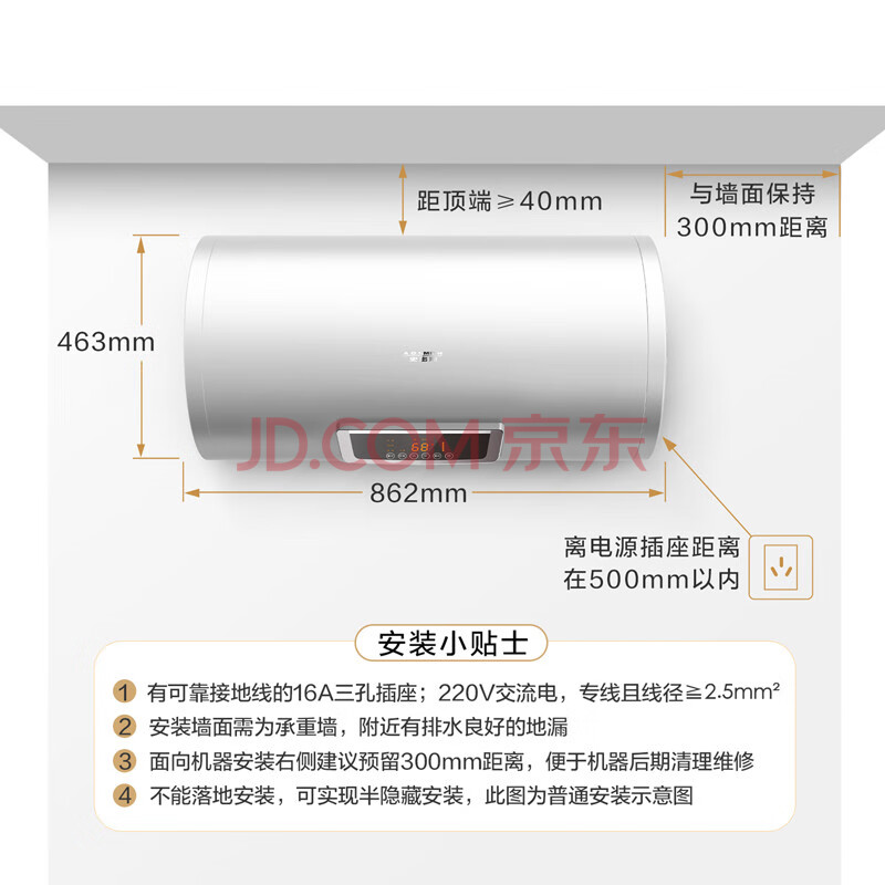商品相册:史密斯(A.O.SMITH)80升电热水器 专利免更换镁棒 金圭内胆 速热节能 纤美长款 大屏 E80VC0 一级能效 *第