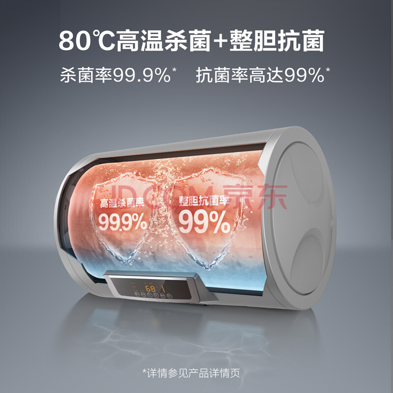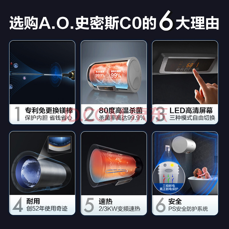 商品相册:史密斯(A.O.SMITH)60升电热水器 专利免更换镁棒 金圭内胆 速热节能 纤美长款 大屏E60VC0 一级能效 *第
