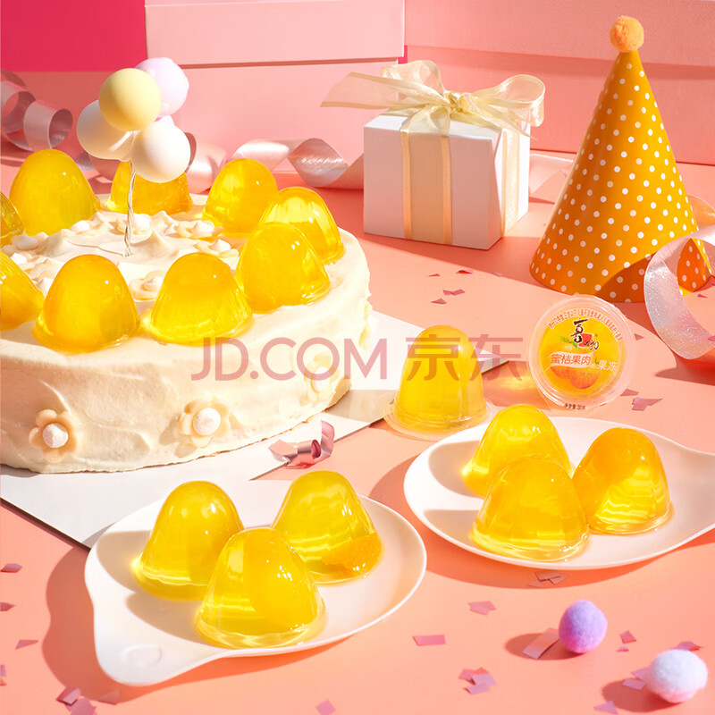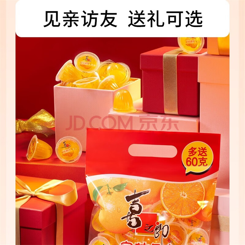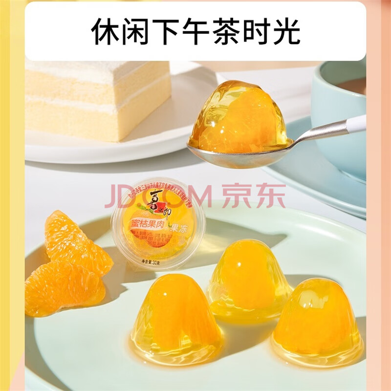 商品相册:喜之郎蜜桔果肉果冻约35杯(990g+60g) 0脂肪 儿童休闲零食大礼包下午茶第