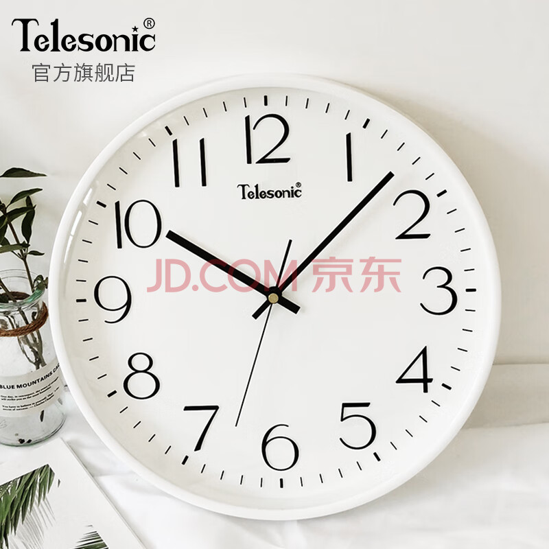 商品相册:天王星挂钟客厅卧室家用钟表创意简约大数字免打孔石英钟挂墙时钟30cm第