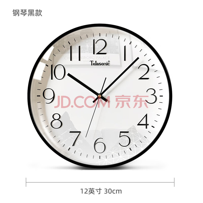 商品相册:天王星凸玻璃面挂钟客厅卧室家用钟表大数字免打孔石英钟挂墙时钟30cm第