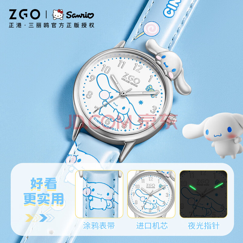 商品相册:正港(ZGO)x三丽鸥 手表女学生防水石英表小学生初中生儿童手表女孩 273蓝色第1张/共7