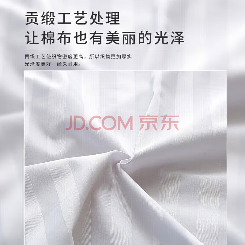 商品相册:然牌 酒店白色床上三件套 100%纯棉缎条纹款酒店套件 0.9-1.2米单人床第