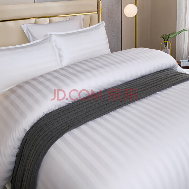 商品相册:然牌 酒店白色床上四件套 100%纯棉缎条纹款 1.5米床被套200x230cm第
