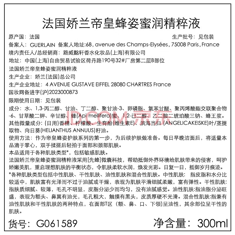商品相册:娇兰(Guerlain)帝皇蜂姿蜂皇水精粹液300ml补水保湿精华护肤礼盒生日礼物送女友第