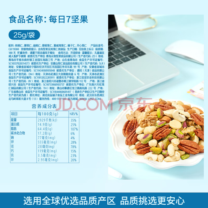 商品相册:良品铺子 7款纯坚果750g 每日坚果干果礼盒核桃囤货零食30包长辈送礼团购第