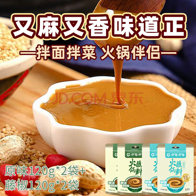 商品相册:呷哺呷哺 原味藤椒火锅蘸料 花生酱 拌面拌饭酱拌菜麻酱 火锅食材120g*4袋第