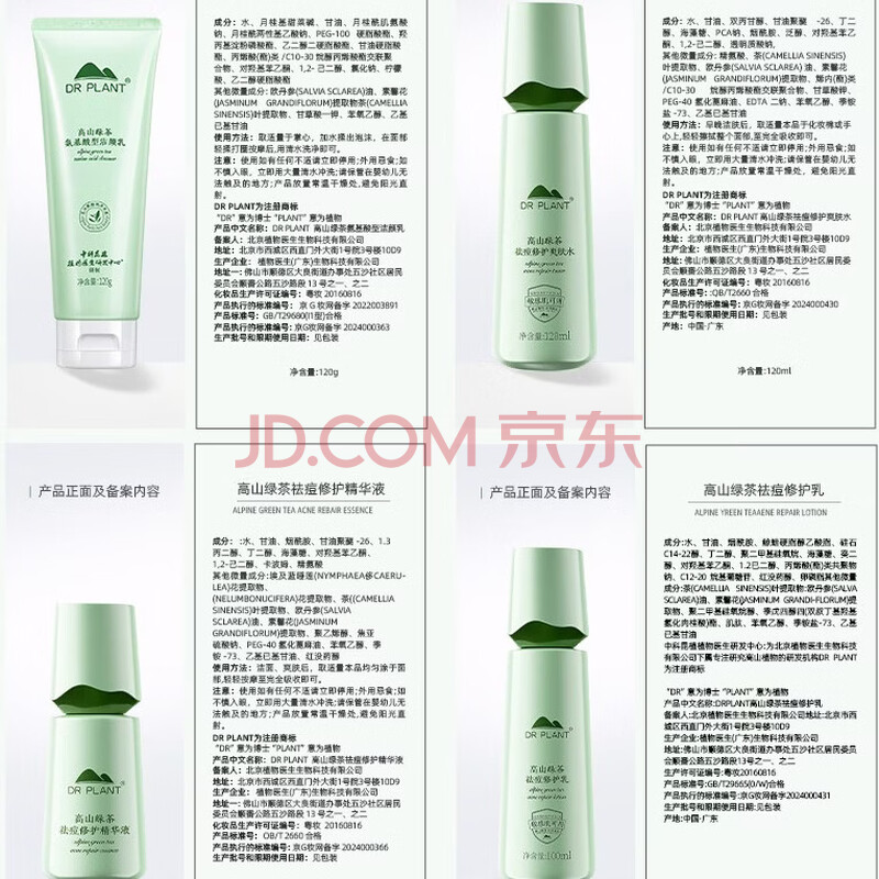 商品相册:植物医生绿茶祛痘修护控油保湿水乳护肤品套装第