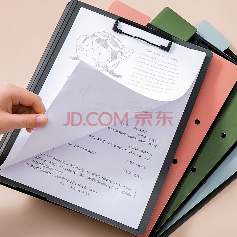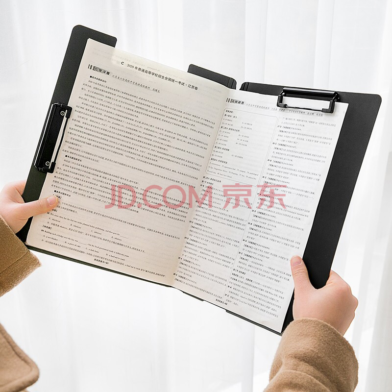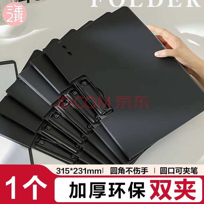 商品相册:三年二班A4文件夹文件板夹莫兰迪色系学生卷子收纳夹商务办公用品会议夹书写垫板文具夹子 升级款双夹-黑色第