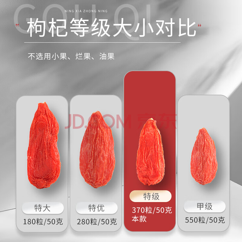 商品相册:红柳沟红枸杞子宁夏头茬特级500g 免洗大果枸杞泡水养生节日礼品送长辈第