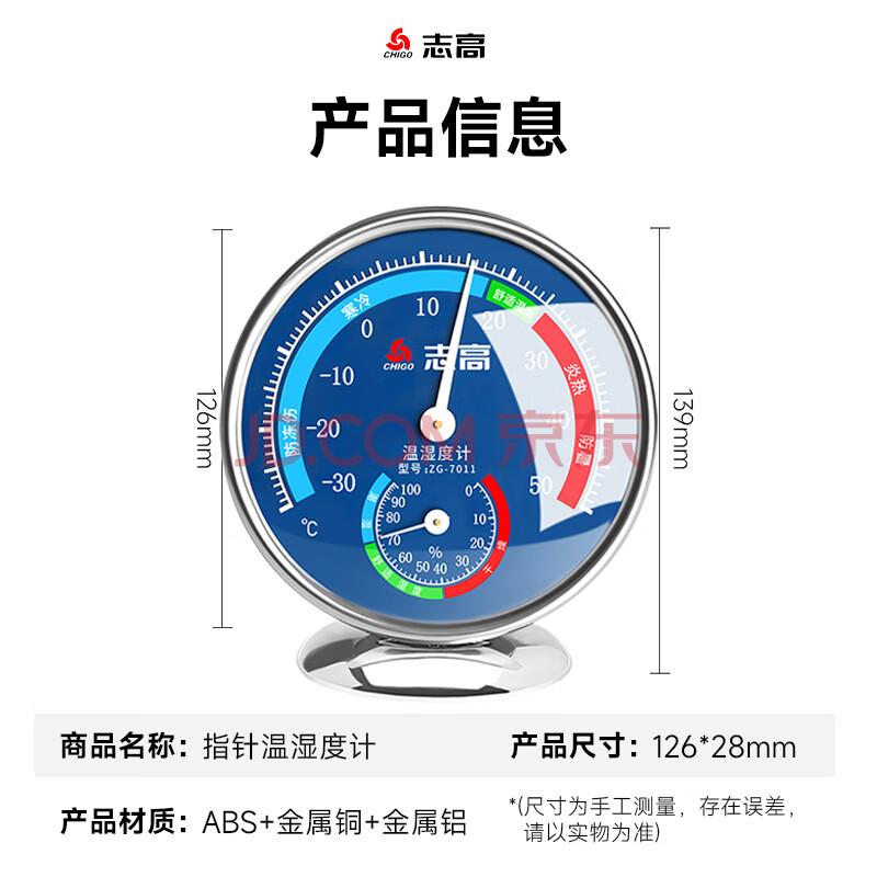 商品相册:志高(CHIGO)温度计室内温湿度计家用 高精度婴儿房测温计温度湿度计ZG-7013蓝第1张/共2
