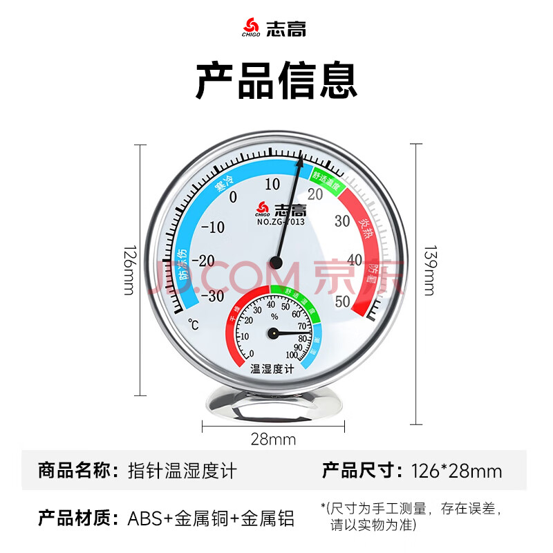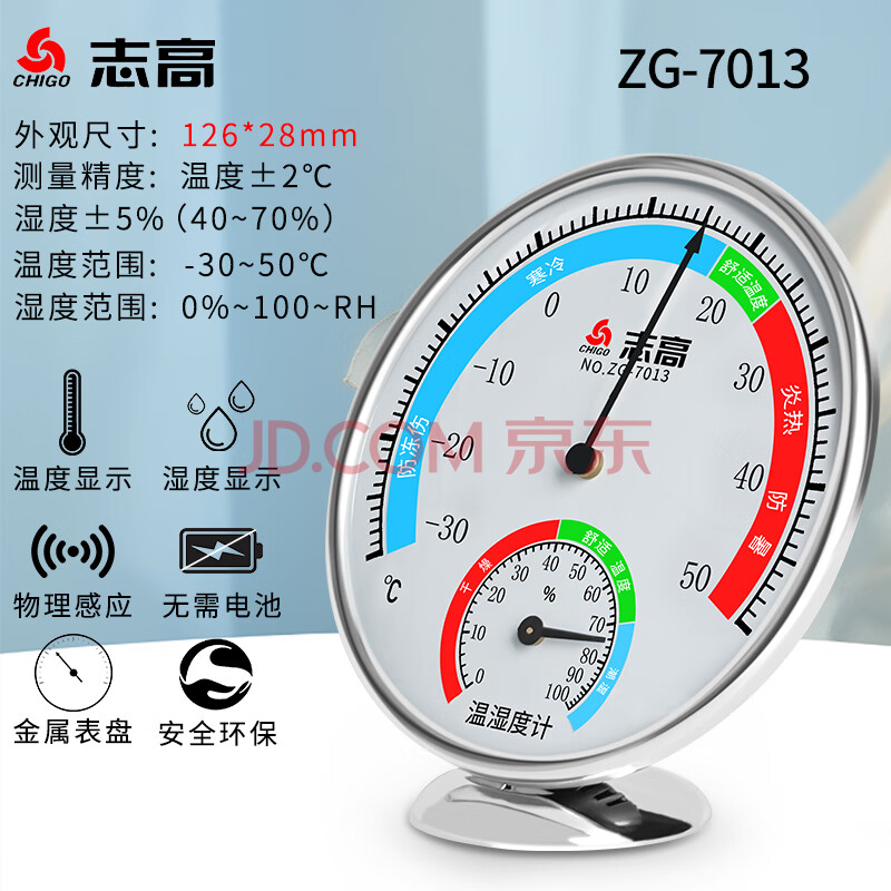 商品相册:志高(CHIGO)温度计室内温湿度计家用 高精度婴儿房测温计温度湿度计ZG-7013白第1张/共3