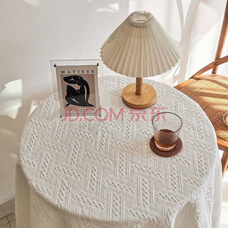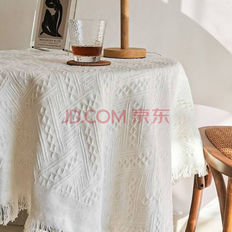 商品相册:艾薇桌布白色蕾丝餐桌布棉织茶几台布圆桌布正方形盖布90*90米白T格第