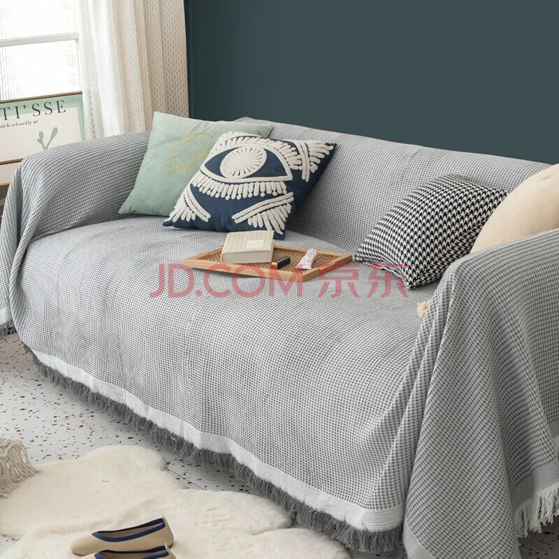 商品相册:艾薇沙发盖布沙发巾全盖沙发套罩四季防滑沙发垫180*230灰白华夫格第