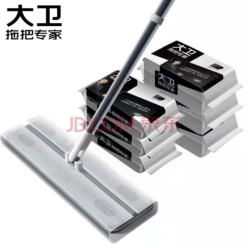 商品相册:大卫一次性平板拖把33cm杆长118cm共6包替换Z11静电除尘即用即拋第