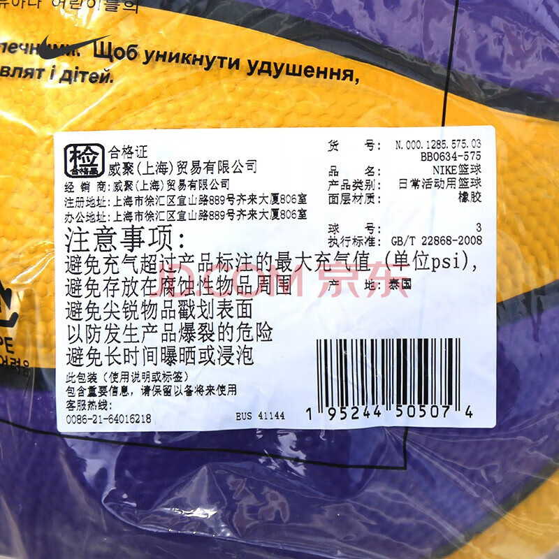 商品相册:耐克(NIKE)儿童幼儿园小篮球小皮球弹力拍拍球耐磨橡胶3号N000128557503紫黄第