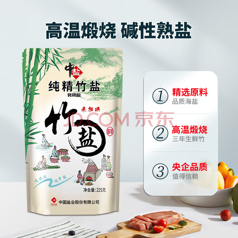 商品相册:中盐 纯精竹盐225g【未加碘 食用海盐】无碘海盐 炒菜调味 中盐出品第