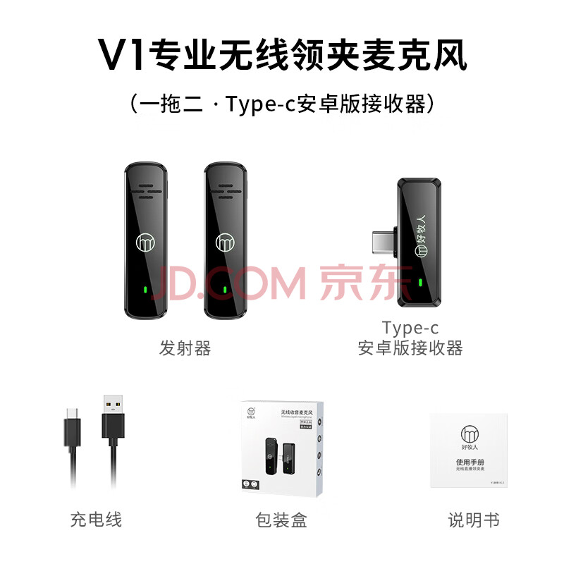 商品相册:好牧人V1无线领夹麦克风小蜜蜂收音麦户外专业降噪采访拍视频专用抖音主播录音直播设备手机话筒一拖二第