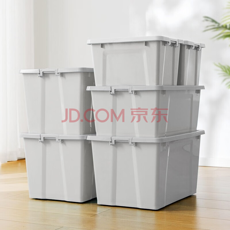 商品相册:清野の木 衣物收纳箱特大号塑料整理箱36L灰色 1个装 带轮第