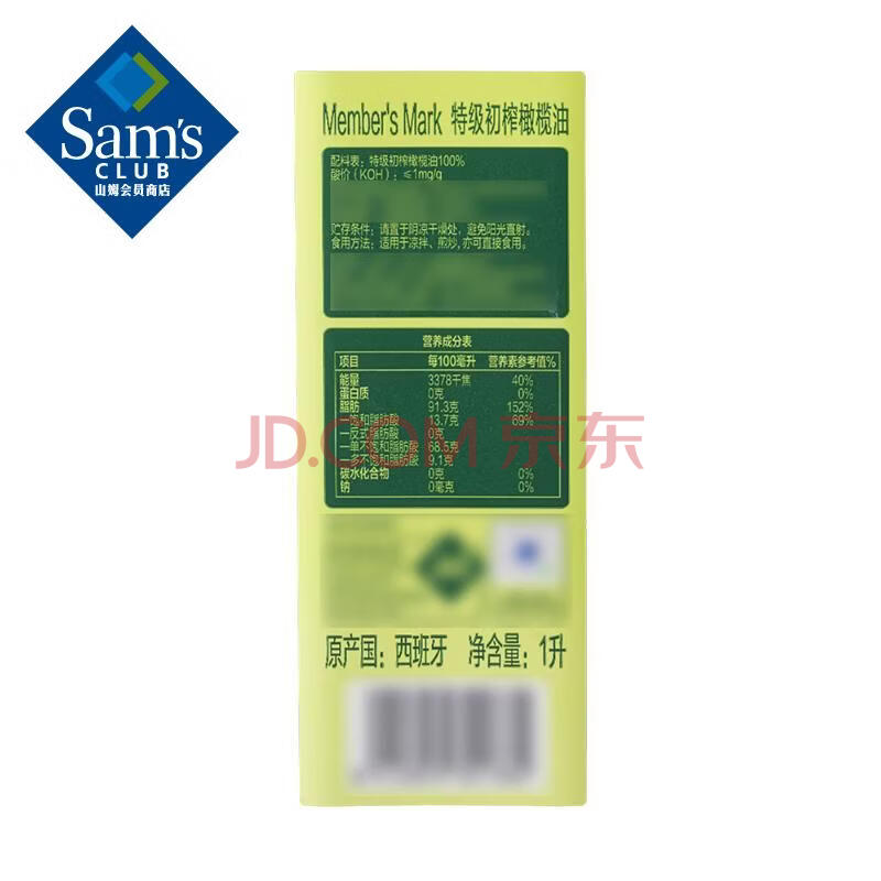 商品相册:Member's Mark 特级初榨橄榄油 1L 1L*1瓶第1张/共6