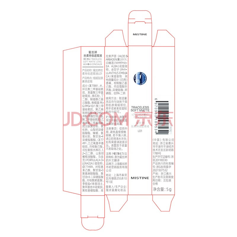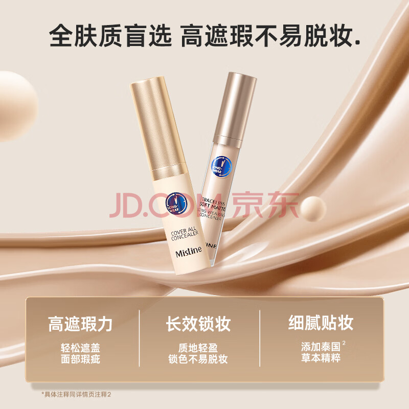 商品相册:Mistine蜜丝婷丝柔持妆遮瑕液膏痘印遮盖雀斑黑眼圈L01生日礼物送女友第