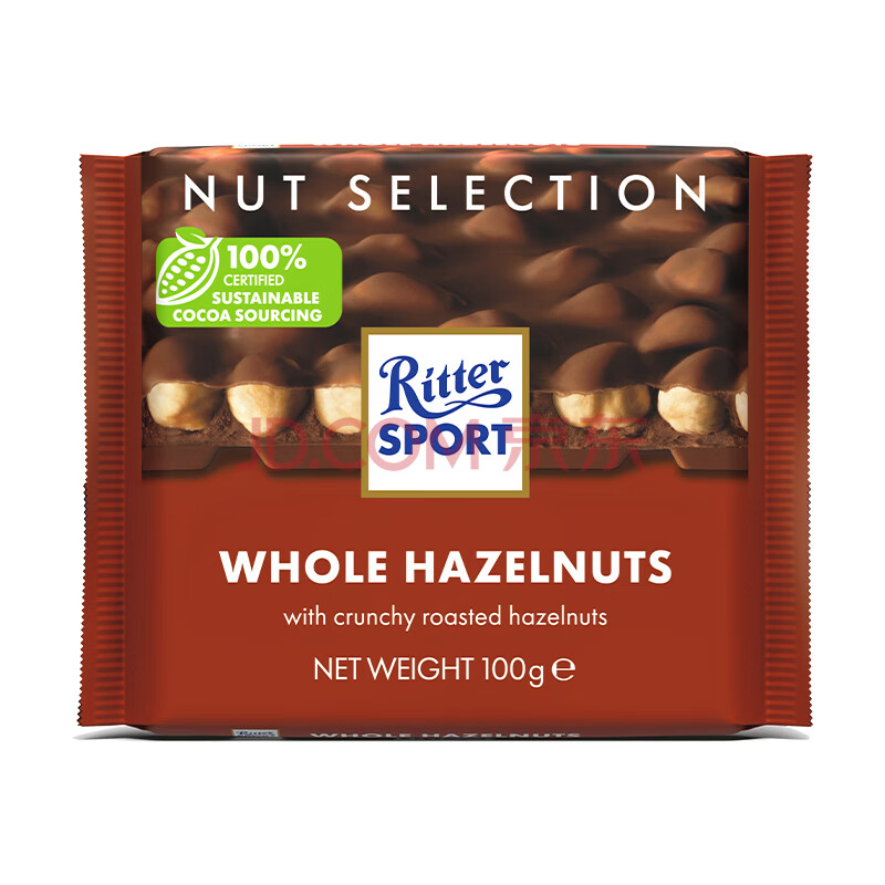商品相册:瑞特滋(RITTER SPORT)全榛子牛奶巧克力 100g 休闲零食糖果节日礼物送男女友德国原产第