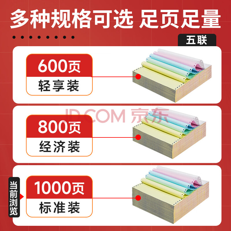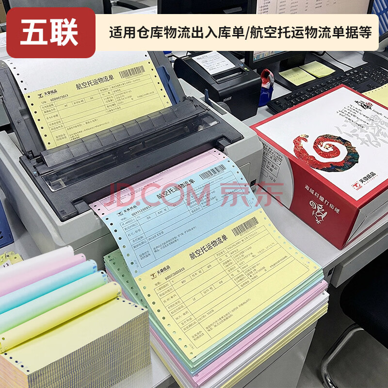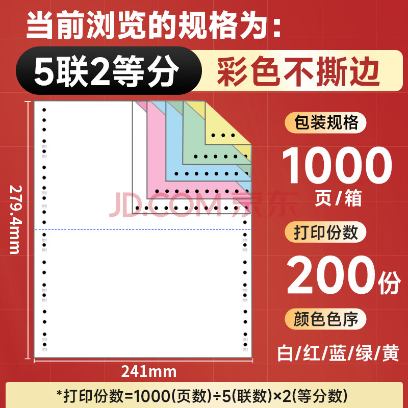 商品相册:天章 (TANGO)【缺页十倍赔】天章风五联二等分不撕边 针式电脑打印纸 送货清单1000页 241-5-1/2 (白红蓝绿黄)第
