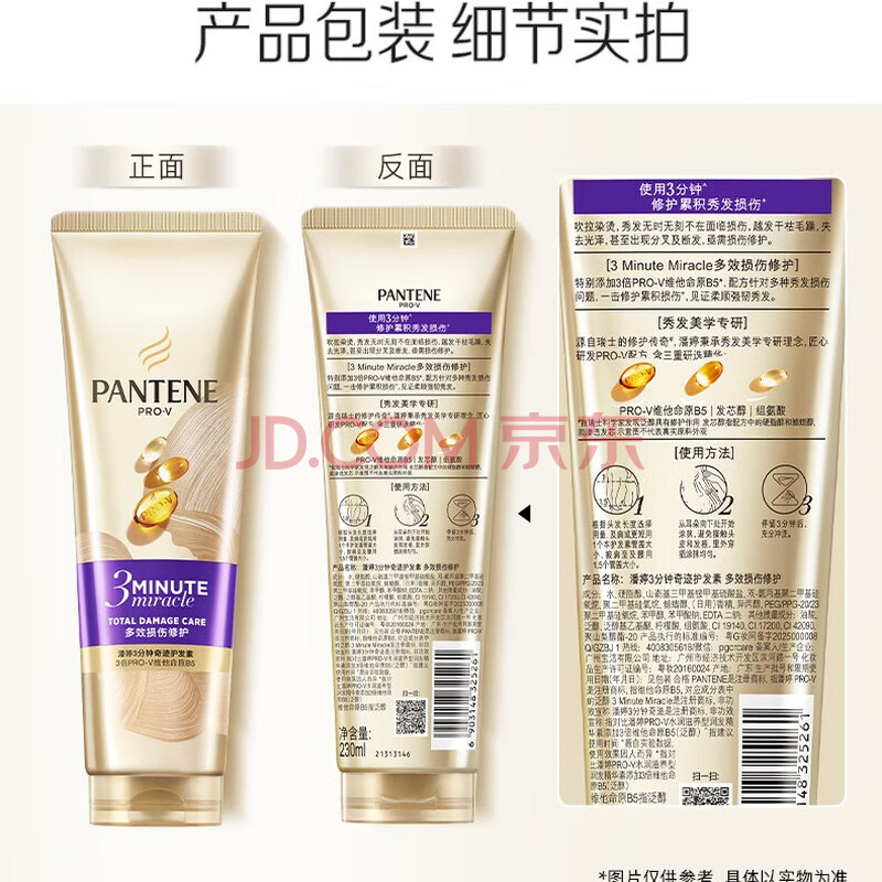 商品相册:潘婷3分钟奇迹护发素修护氨基酸多效损伤修护230ml养发洗护滋养第
