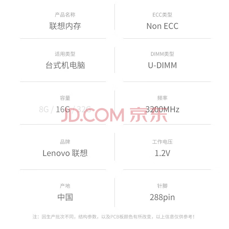 商品相册:联想(Lenovo)16GB DDR4 3200 台式机内存条 第