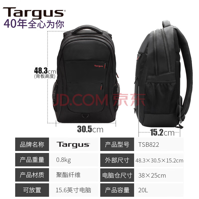 商品相册:泰格斯(TARGUS)泰格斯双肩电脑包15.6英寸笔记本包通勤背包书包防雨罩 黑 822第