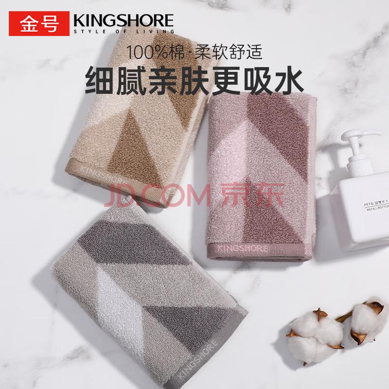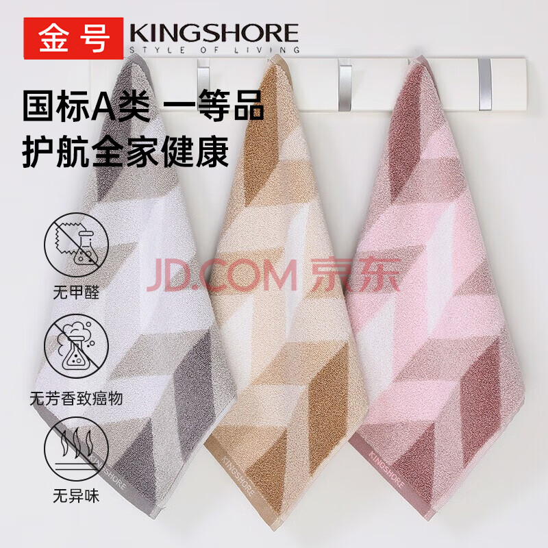 商品相册:金号方巾3条 A类纯棉小毛巾吸水家用宿舍洗脸擦手巾 紫棕灰第