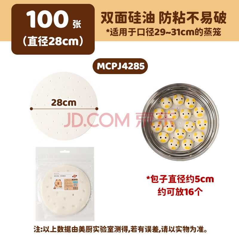 商品相册:美厨(maxcook)蒸笼纸包子垫纸蒸包子纸蒸馒头纸一次性100张 直径28cm MCPJ4285第