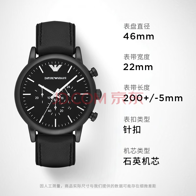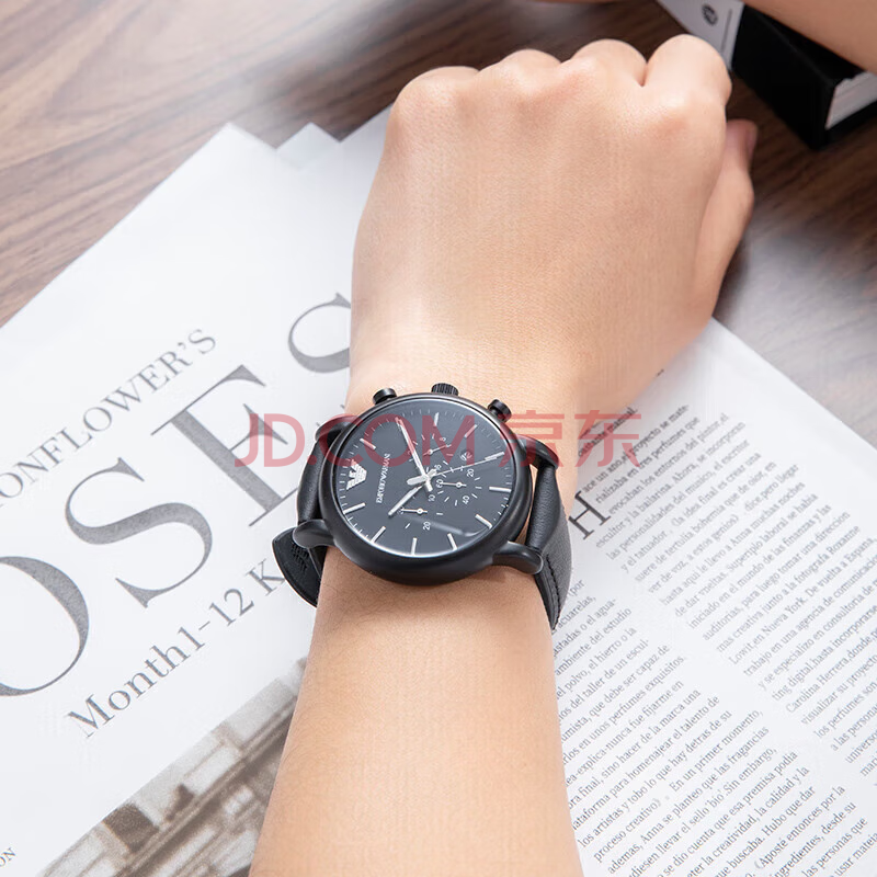 商品相册:EMPORIO ARMANI阿玛尼手表男士黑武士多功能三眼黑色皮带生日礼物送男友AR1970第