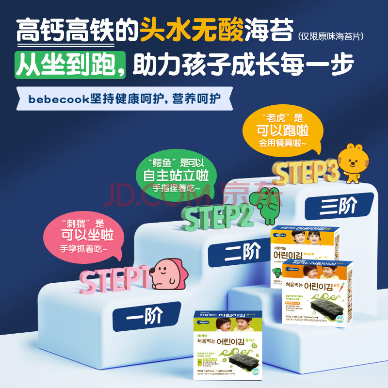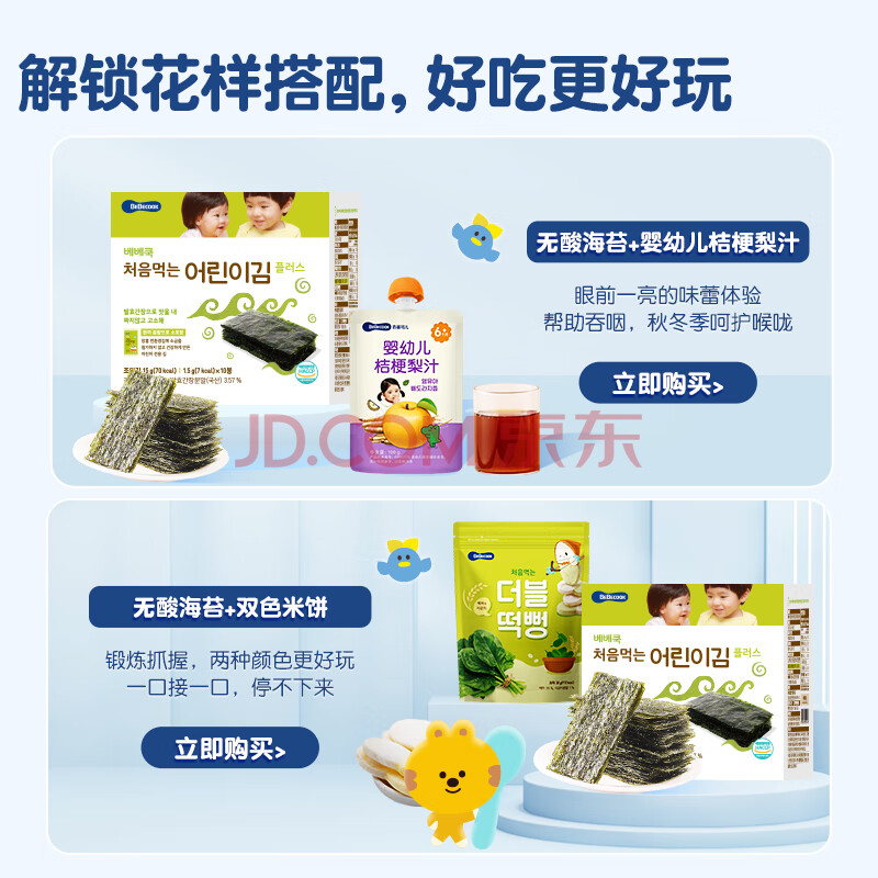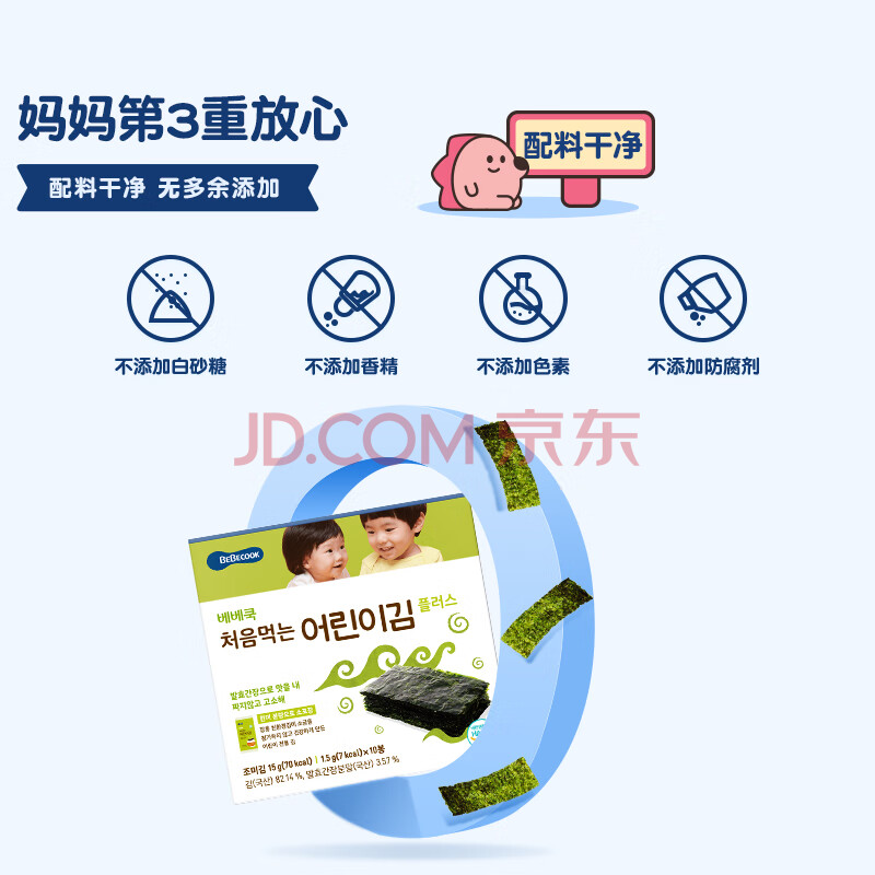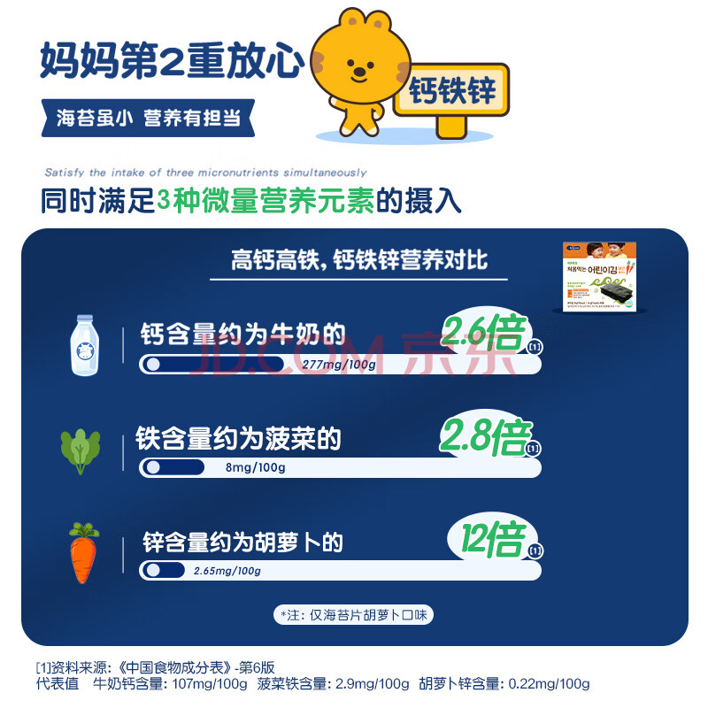 商品相册:Bebecook海苔片 儿童零食无酸紫菜片高钙高铁胡萝卜味15g 适合1阶以上第