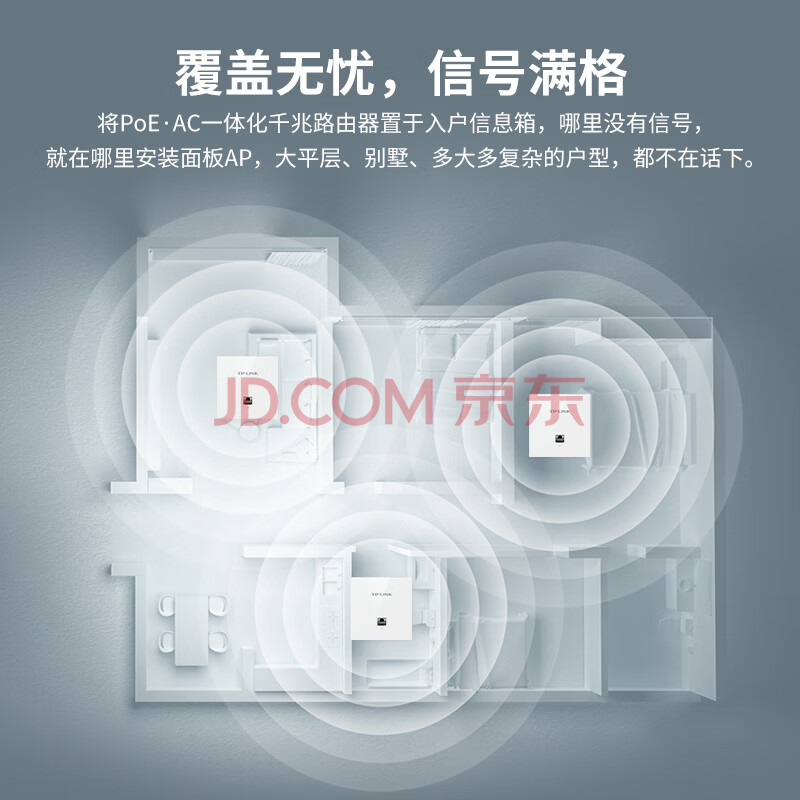 商品相册:普联(TP-LINK)AX3000无线面板AP路由器套装全屋WiFi6无线mesh组网双频千兆大户型 分布式1拖3银色易展版超薄套装第