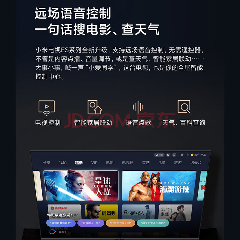 商品相册:小米电视 ES55 2022款 4K超高清 2+32GB 远场语音 金属全面屏智能平板电视机L55M7-ES【支持LOGO定制】第