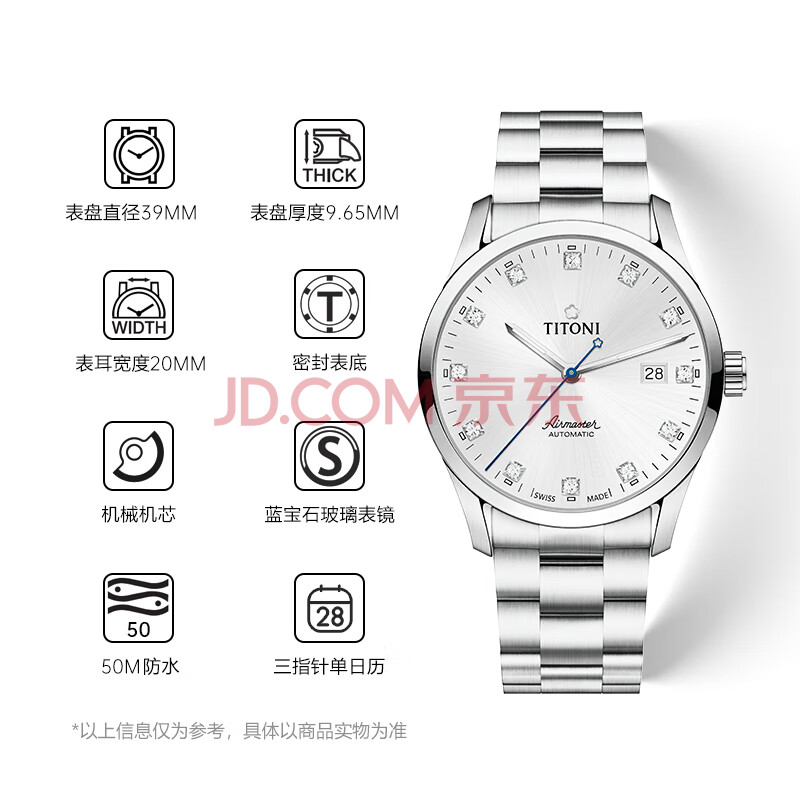 商品相册:梅花(Titoni)瑞士手表 男士机械表 空中霸王系列 钢带进口腕表83743-S-581礼物第