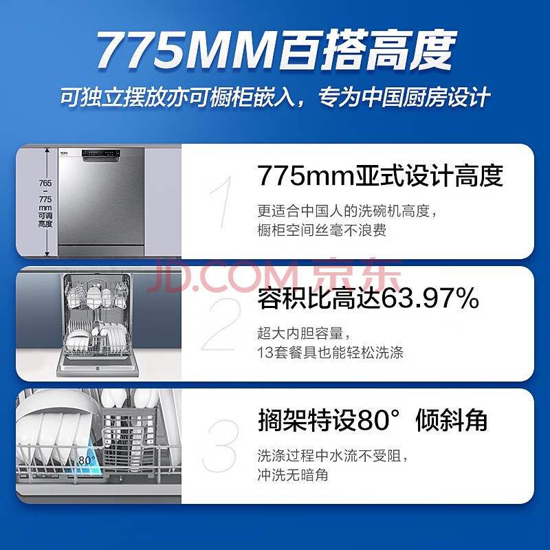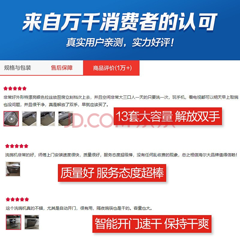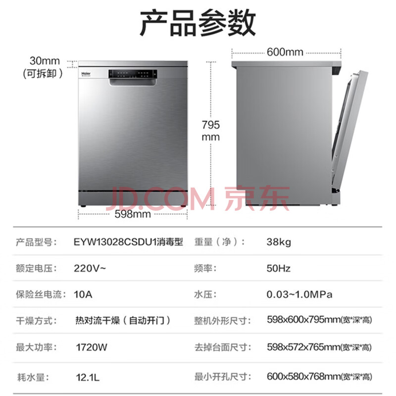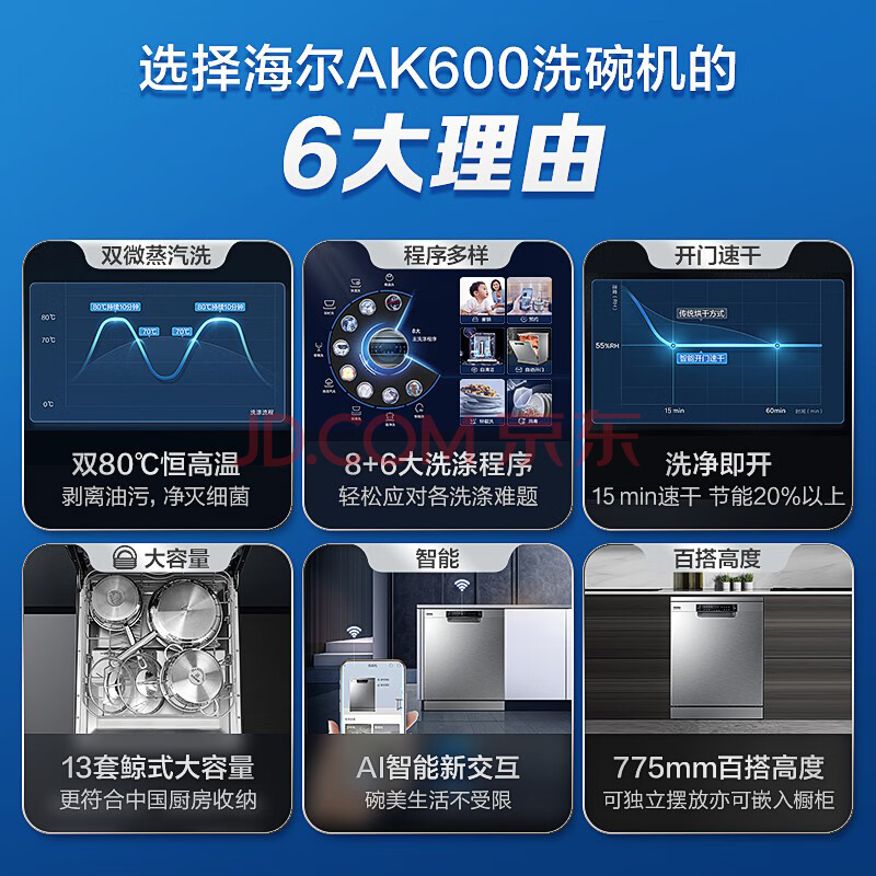 商品相册:海尔(Haier)洗碗机嵌入式独立式13套大容量AK600 双微蒸汽除菌 智能开门速干 EYW13028CSDU1消毒型第