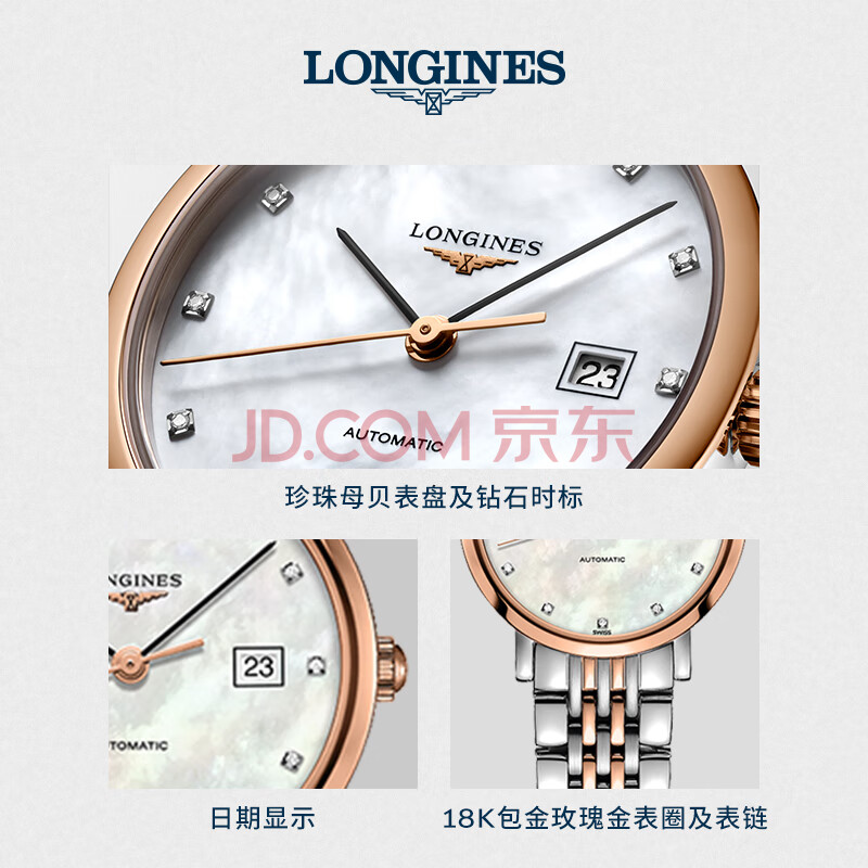 商品相册:浪琴(LONGINES)瑞士手表 博雅系列 女士钢带机械表 L43105877第