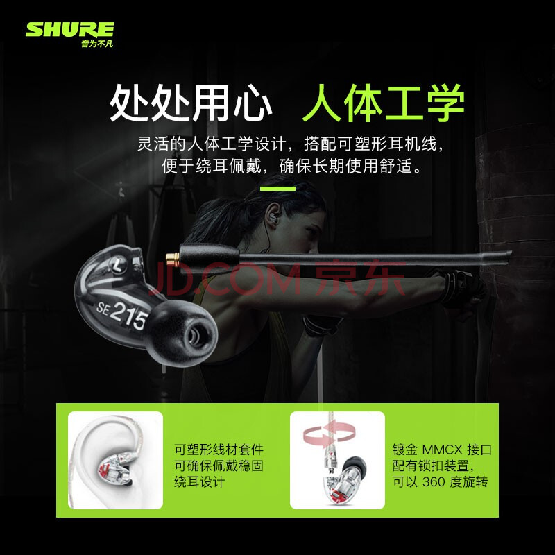 商品相册:SHURE舒尔Aonic215 UNI动圈有线耳机 入耳式线控通话 强劲重低音 运动 HIFI 手机耳机 黑色第