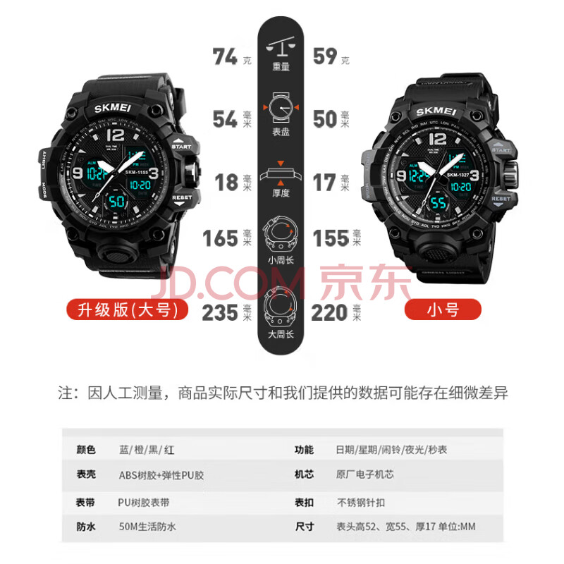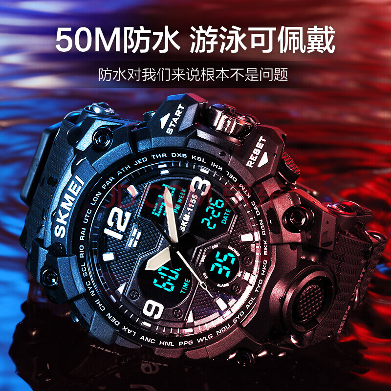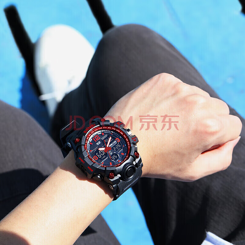 商品相册:时刻美(skmei)学生手表初高中生青少年儿童多功能潮流夜光防水电子表男女1327红第