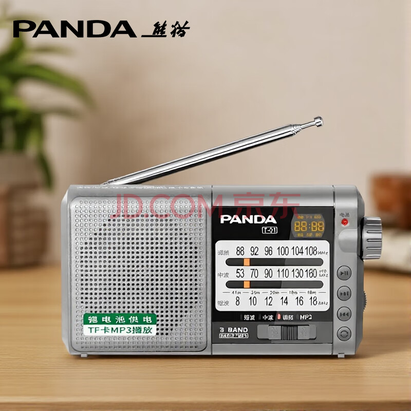 商品相册:熊猫(panda)T-01 老人迷你三波段半导体 全波段收音机 插卡锂电数码音响(银色)第1张/共3
