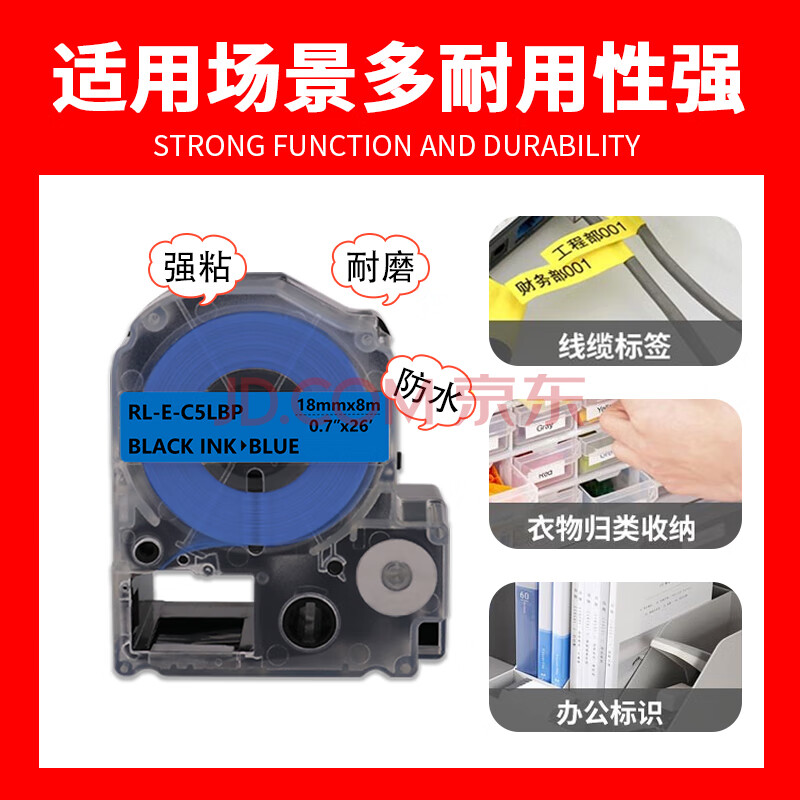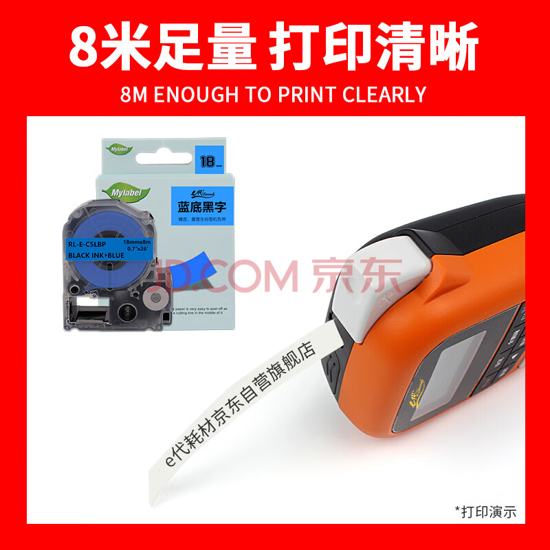 商品相册:e代标签色带适用爱普生18mm蓝底黑字标签纸LW-K400标签机600P 1000P C410 Z700 Z900锦宫打印机第