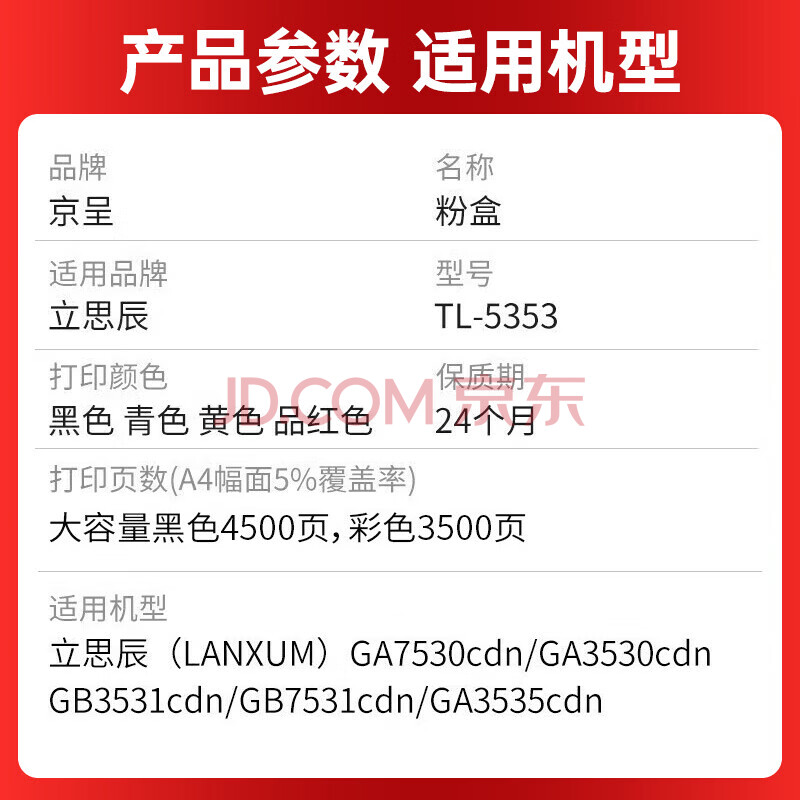 商品相册:京呈 TL-5353K大容量黑色粉盒适用立思辰GA3530CDN GA7530CDN打印机硒鼓GA3535CDN墨粉盒GB3531cdn GB7531cdn第